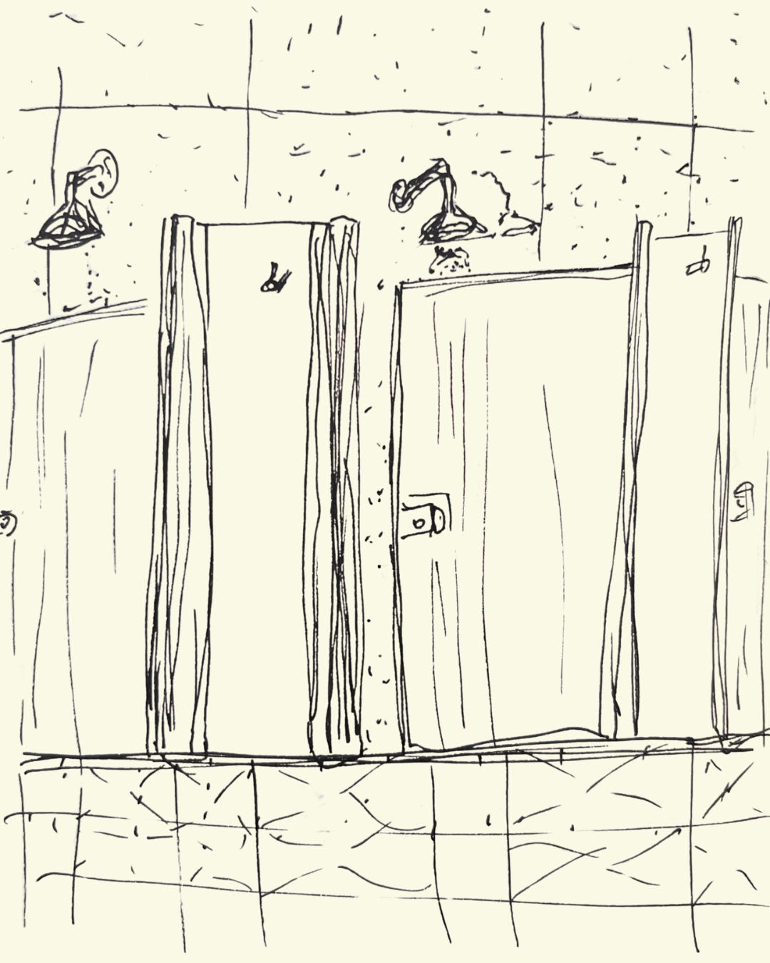 Foi o que tinha no caderninho. Estou orgulhosa, pois encontrei uma de vestiário de academia (que tipo de gente faz um desenho do vestiário depois do treino? Não responda).