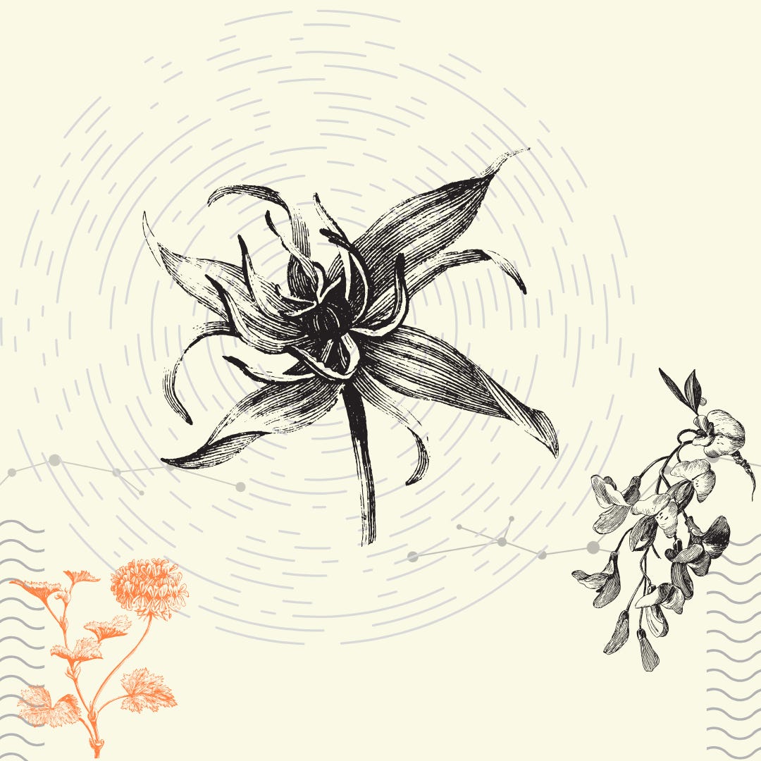 O desenho não foi feito por mim (por isso está bonito): são três ilustrações botânicas feitas por Tom Chalky, usei na imagem do evento com o Canva.